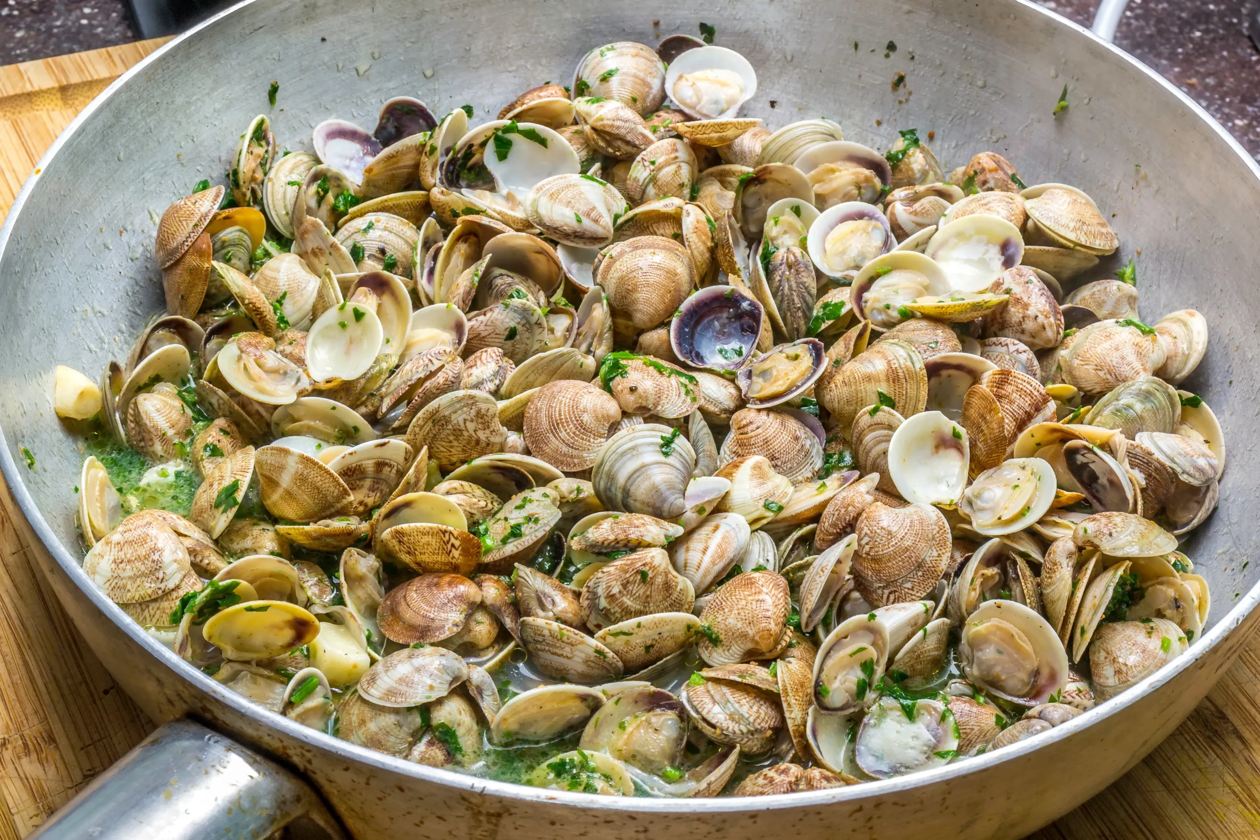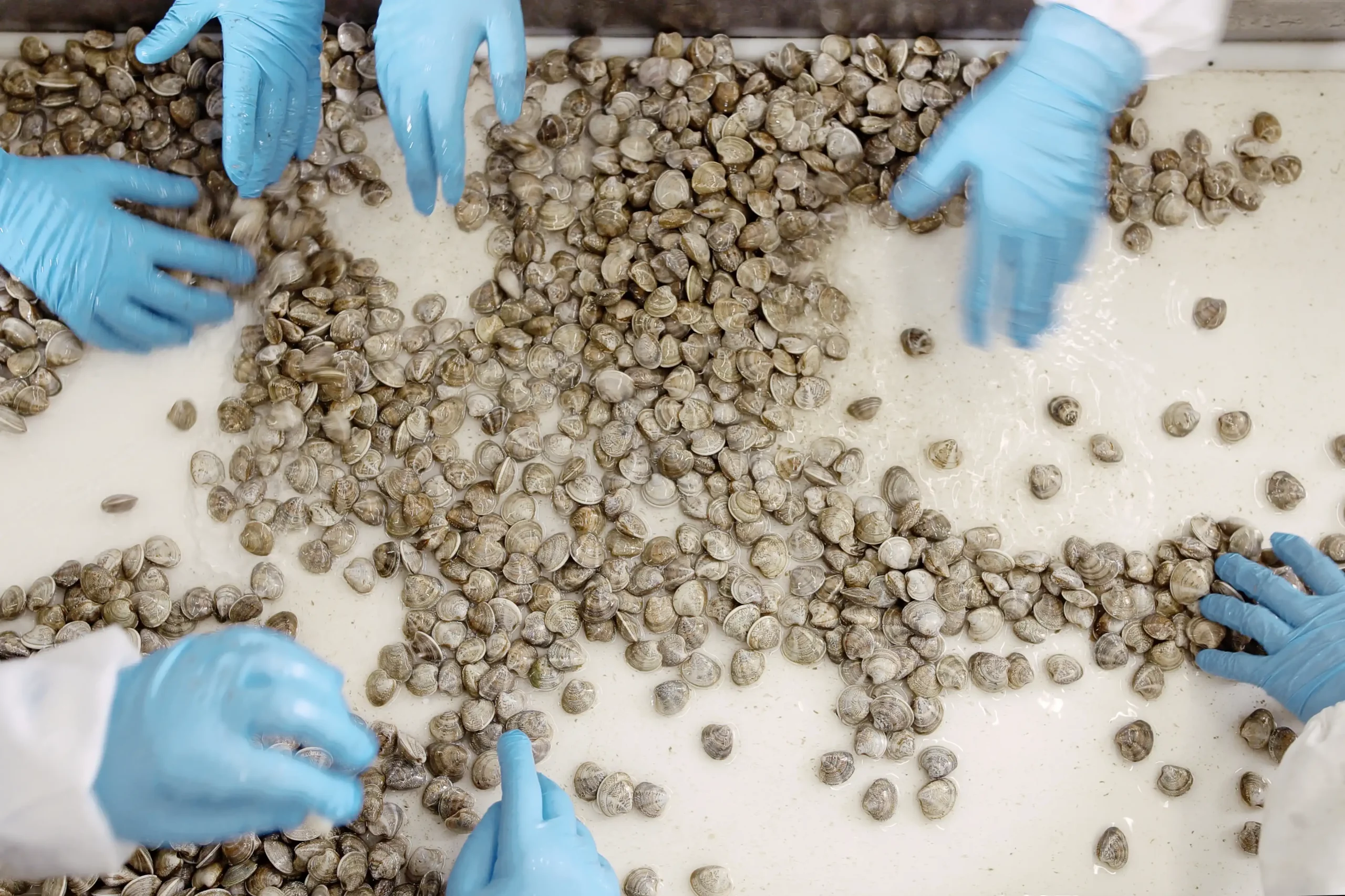Le vongole fresche vengono desabbiate tramite un impianto di stabulazione e desabbiatura che adotta la tecnologia SKIM, capace di rimuovere impurità e batteri, per garantire un prodotto sicuro e pronto da cucinare. L’acqua viene sterilizzata con lampade UV e il confezionamento sottovuoto assicura igiene e freschezza. Ogni lotto è monitorato attraverso un sistema di tracciabilità avanzato, per garantire sicurezza e qualità a ogni cliente.